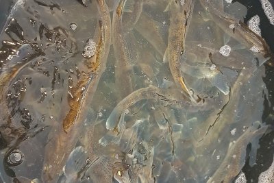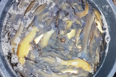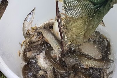 Zusammengerechnet von Wirtschaftsfischen (Hecht, Zander, Karpfen, Schleie, Aal) und Ökologische Fischarten (Rutten, Barben, Gründlinge, Lauben, Karauschen, Döbel, Rotaugen, Rotfedern, etc.) wurden ca. 50.000 Stück Jungfische aller Arten auf den gesamten Gewässerstrecken verteilt. Je nach Gewässerstruktur und Lebensgewohnheiten der Fischarten.